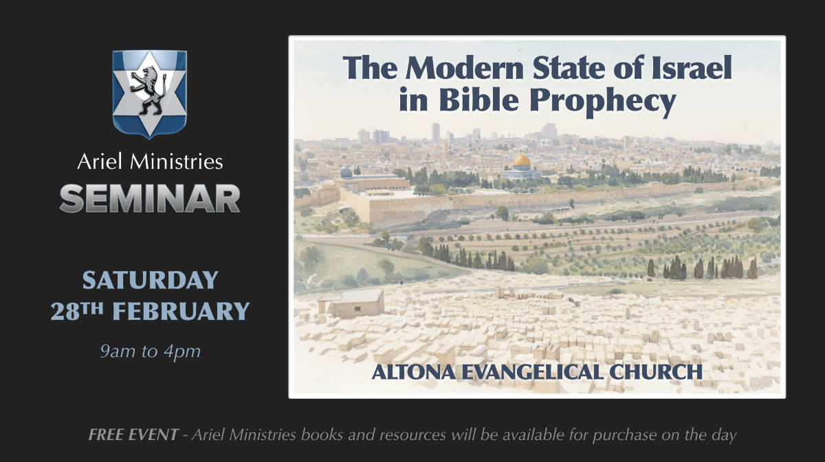 Join us for this all-day seminar with Ariel Ministries where we will be examining the modern-day state of Israel in light of Bible Prophecy.